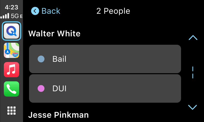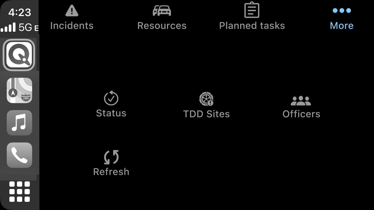 This is what the screen looks like, it has a modal with the entire list on the left, and the top navigation enables the officer to switch between different categories. The rest of the features that are not too frequently is put into “More”. Eventually we decided to pivot due to Apple CarPlay limitations on the scalability of this first concept for the long term, as the list modal cannot be customized further if we were to add new features.